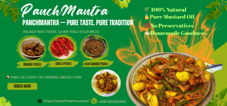 Bring home the authentic taste of Rajasthan with PanchMantra’s Mango Pickle (Aam Ka Achar) — a timeless Indian classic made with hand-picked raw mangoes, sun-dried to perfection and blended with aromatic spices.