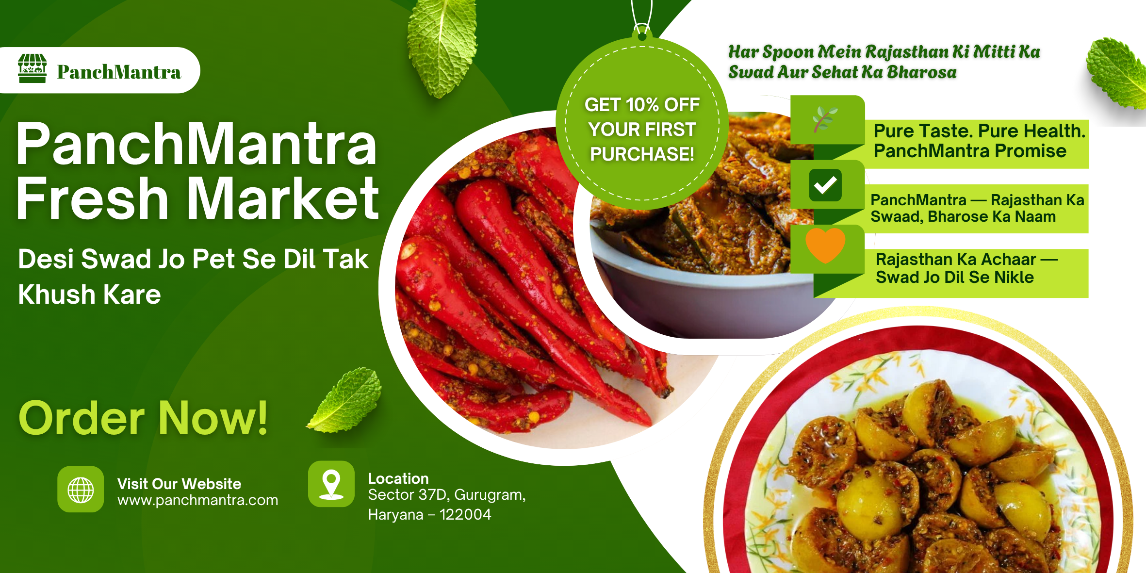 Bring home the authentic taste of Rajasthan with PanchMantra’s Mango Pickle (Aam Ka Achar) — a timeless Indian classic made with hand-picked raw mangoes, sun-dried to perfection and blended with aromatic spices.